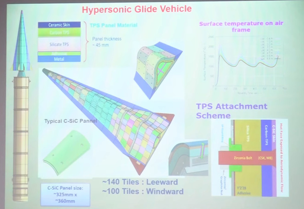 A detailed TPS attachment scheme shows the use of Zirconia bolts and high-temperature adhesives for securing the tiles to the metallic frame, ensuring both strength and heat resistance during prolonged hypersonic flight.